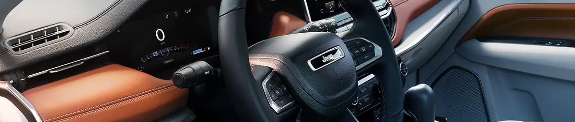 The Compass's interior is practical yet luxurious. Premium upholstery options include cloth, vinyl, and leather, and they all pair nicely with metal-look accents. Amenities like heated seats and a heated steering wheel will keep you comfortable no matter what the weather is like outside. Use the brand-new UConnect 5 infotainment system to stream music, get traffic updates, and make hands-free phone calls.