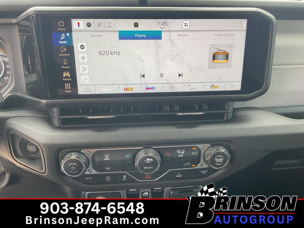 See what's behind you with the back up camera on the vehicle. This 2026 Jeep Gladiator 's Forward Collision Warning system alerts the driver to potential front-end collisions, enhancing safety. This 1/2 ton pickup comes equipped with Android Auto for seamless smartphone integration on the road. Bluetooth® technology is built into this model, keeping your hands on the steering wheel and your focus on the road. This model offers Apple CarPlay for seamless connectivity. An off-road package is installed on this Jeep Gladiator so you are ready for your four-wheeling best. This unit has a V6, 3.6L high output engine. This 1/2 ton pickup is painted with a sleek and sophisticated black color. The vehicle has four wheel drive capabilities. Electronic Stability Control is one of many advanced safety features on the Jeep Gladiator. Easily set your speed in this unit with a state of the art cruise control system. Increase or decrease velocity with the touch of a button.