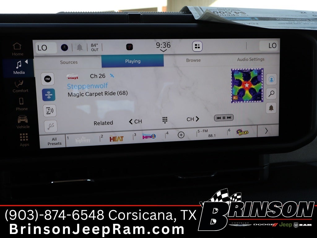 - Radio w/Seek-Scan, Clock, Speed Compensated Volume Control, Aux Audio Input Jack, Steering Wheel Controls, Voice Activation, Radio Data System and Uconnect External Memory Control